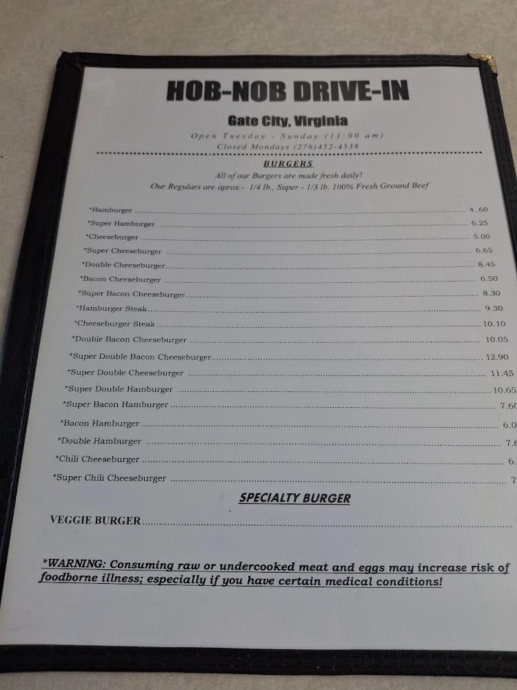 Welcome to Hob-Nob Drive In, a charming American restaurant located in Gate City, VA, where great food meets a relaxed atmosphere. Enjoy a diverse menu featuring delicious coffees, local specialties, and mouthwatering desserts, perfect for lunch, dinner, or a quick bite. With accessible seating and services, we warmly welcome everyone, including families and groups. Our dedicated team is ready to serve you at your convenience, whether you prefer dining in or taking out. Join us for a delightful experience, where good food and friendly service come together in a historic setting. Reservations are welcome!